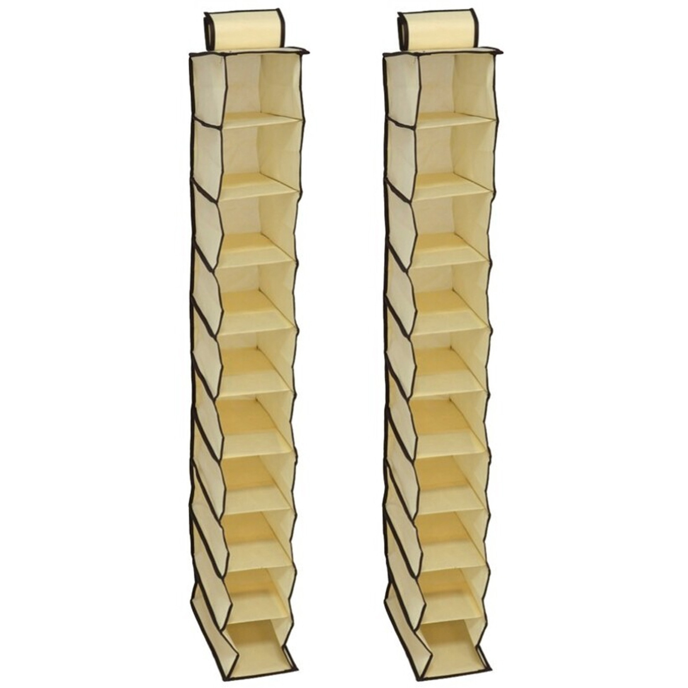 2x gerimport hang opbergkast voor op de camping of gewoon voor thuis. Op zoek naar extra opbergruimte op de camping, in de caravan of gewoon thuis? Deze opvouwbare hangkast met 10 vakken in beige is d? slimme oplossing! Hang ?m zo aan een tentstok, kastroede of haak en je hebt in ??n klap meerdere legniveaus tot je beschikking. Ideaal voor kleding, schoenen, handdoeken of andere spulletjes die je graag overzichtelijk opbergt. Lichtgewicht, snel op te hangen ?n net zo snel weer opgevouwen als je hem niet nodig hebt. Compact in vorm, groots in gemak! Afmeting: ca. 30 x 120 cm. Kleur: beige. Materiaal: non woven stof.