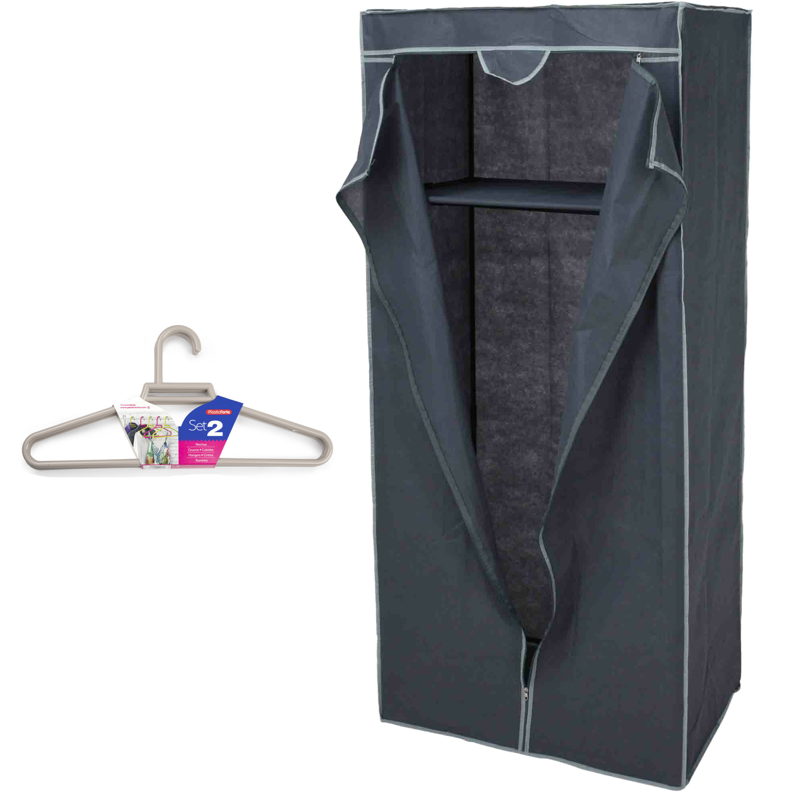 Set van mobiele kledingkast met kledinghangers – opvouwbaar – grijs
